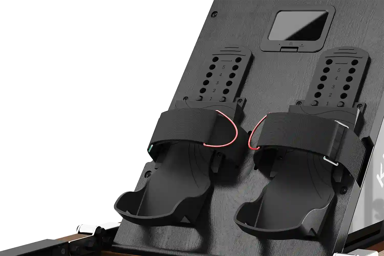 De ergonomische voetsteunen houden je voeten stevig op hun plek en zorgen voor een veilige en efficiënte roeibeweging.