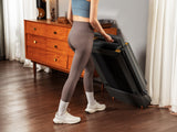 Grâce au design pliable 180°, le tapis de course devient compact et se range facilement sous votre lit ou armoire par exemple quand vous avez terminé votre séance d'entraînement !