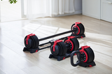 Vervangt tot 12 losse dumbbells, van 2 tot 24 kg.