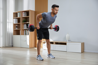 Bouw kracht op met bicep curls, tricep extensions en shoulder presses.