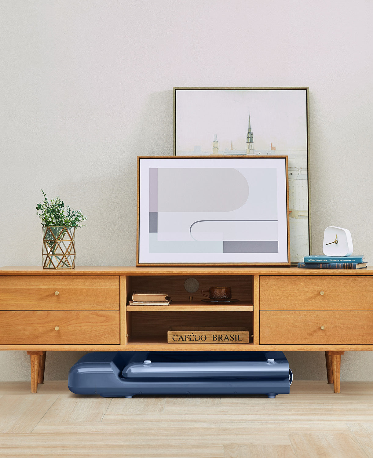 Dankzij de gepatenteerde vouwtechnologie neemt de C2 slechts een oppervlakte in van 0.5m². Met een hoogte van 13.6 centimer is deze vrijwel overal onder te plaatsen, zoals de bank of kast!