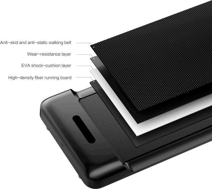 De WalkingPad C2 bestaat uit 4 verschillende lagen, elk met een eigen functie! Gecombineerd zorgen deze voor de minste impact op je lichaam, waardoor je nóg vaker kunt trainen!