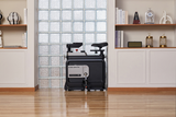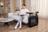Klap de voeten in, verwijder het bureaublad of stuur, en schuif de W1B eenvoudig naast de bank, naast een kast of in een hoek.