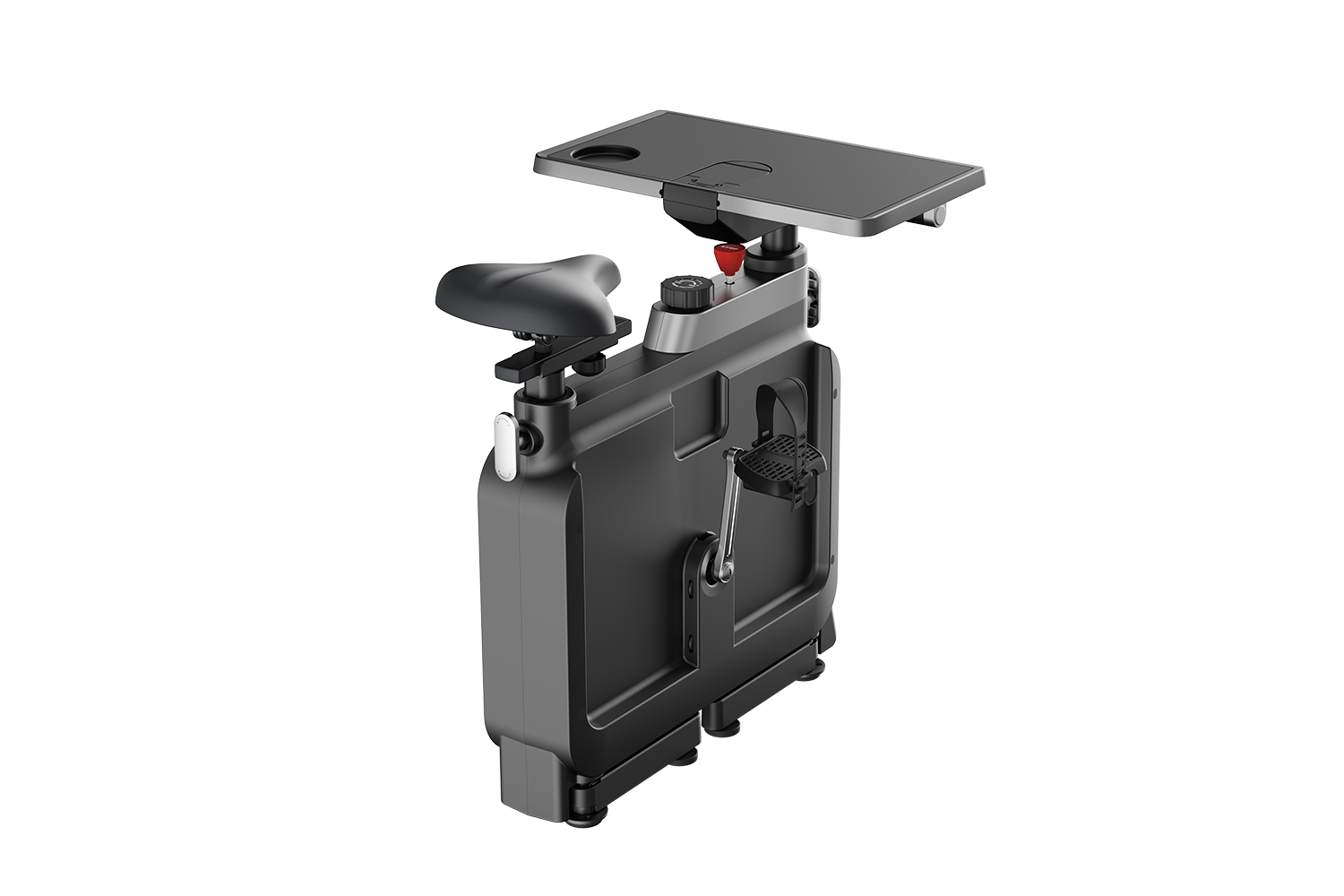 Deze slimme bureaufiets werkt volledig zonder stroom, waardoor je hem overal kunt gebruiken. Geen kabels, geen stopcontact, geen beperkingen. De weerstand wordt mechanisch opgewekt en is eenvoudig verstelbaar, zodat je altijd comfortabel kunt trappen terwijl je werkt of vergadert.