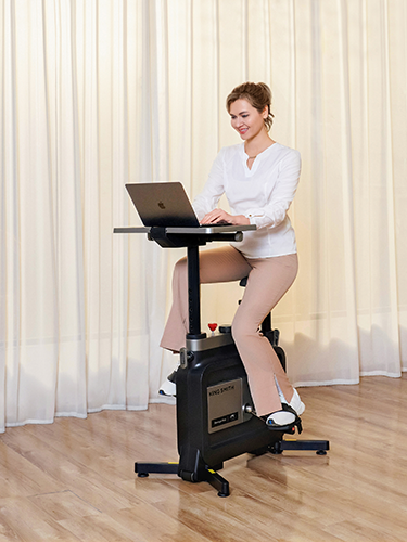 Plaats de fiets op een vlakke ondergrond, stel het zadel en het bureaublad in op jouw ideale hoogte, kies de gewenste zitpositie en draai aan de weerstandsknop voor de trapstand die je wilt. Klaar om te fietsen!